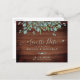 Save The Date! Verkünden Sie Ihre Hochzeit mit Freunden und Familie mit diesen günstigen rustikalen Holz und Eukalyptus speichern Sie die Dattelkarten. Diese Budget Hochzeitskarten haben eine Umschlagoption. Personalisieren Sie mit Namen, Hochzeitsdatum, Ort. Fügen Sie weitere Informationen auf der Rückseite hinzu. Diese einzigartige grüne Hochzeit rette die Karten werden einen bleibenden Eindruck machen, Ihre Gäste werden sicherstellen, Save the Date! COPYRIGHT © 2020 Judy Burrows, Black Dog Art - Alle Rechte vorbehalten. Rustikale Holzgrüne Haushalt Hochzeit retten das Datum
