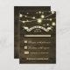 RUSTIC COUNTRY WEDDING RSVP Karten mit bedrücktem Holzhintergrund, glitzernde Streichellichter und stilvolle Typografie mit einem Banner.