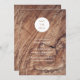 Dieses Design ist mit einem rustikalen Holzfußboden versehen. Der einfache, braune Holzhintergrund wird durch den weißen Text und das moderne, saubere mittlere kreisförmige Element ergänzt, das den Titel umgibt. Die Brauntöne des Holzkorns schaffen ein rustikales Waldgartengefühl. Elegantes Hochzeitsdesign Save the Date Kartendesign mit modernen Elementen. Auch die passenden Hochzeitseinladungen und andere Schreibwaren sind verfügbar.