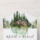 Erleben Sie Ihren Aufenthalt mit dieser eleganten Themenhochzeit im Wasserfarbenwald, die eine wunderschöne Hütte inmitten von Bergen und Kiefern auf weißem Hintergrund mit abnehmbarer UAWG-Postkarte bietet. Fügen Sie einfach Ihre Veranstaltungsdetails zu dieser einfach zu bedienenden Vorlage hinzu, um sie zu einer einmaligen Einladung zu machen.