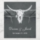 Rustikale Textur Grunge Holzkohle graue Bulle Kuh Schädel Western Cowboy Hochzeit Empfang Weinflaschen Etiketten. Vintages Bauernhaus inspiriert. Alte wilde westliche Antike Stil Gefallen Geschenke. Einfaches, cooles, trendiges, modernes Bauerndesign. Personalisieren Sie Ihr Skript. Bildrecht Marg Seregelyi Fotografie.