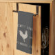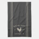 Mit diesem niedlichen personalisierten Küchentuch mit Familienname oder Bauernname, feststehendem Jahr und weicher, gelber Schrift mit einer Hahnenillustrierung auf kohlegrauem Hintergrund feiern Sie das Leben auf dem Bauernhof.