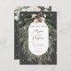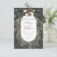 Dieses Design besticht durch einen rustikalen grünen Kiefer und einen pineconfarbenen Bouquet auf einem weichen schwarzen Hintergrund aus Holzkohle mit weißen Blume. Es wird durch ein weißes, glänzendes Overlay hervorgehoben, um den Zauber der schönen Winterferien zu veranschaulichen. Ideal für eine Weihnachts- oder Winterhochzeit. Diese Karte ist Teil der rustikalen Tan Pine Winter Sparkle Wedding Suite, die von Simply Farmhouse Press kreiert wurde.