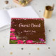 Rustikale Holzpink-Blütenschmetterlingshochzeit Gästebuch