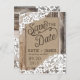 Rustikale Holzplanen und Spitzen Save the Date Ankündigungspostkarte