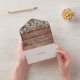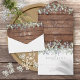 Das Ganze in einer Hochzeitseinladung mit hübschem, grünen Grün und eleganter moderner Typografie auf rustikalem Holzpaneelenboden. Die Einladung enthält eine perforierte RSVP-Karte, die für Sie individuell adressiert oder links als leere Karte für die Handschrift der Adressdaten Ihres Gastes verwendet werden kann. Entwickelt von Thisisnotme©