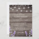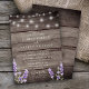 Rustikaler Holzdruck mit Lavendel und weißen Saitenleuchten Einladung zur Hochzeit.