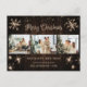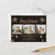 Rustikales Foto Frohe Weihnachten und Happy New Year Postkarte mit einer Foto-Collage mit Sternen, Schneeflocken und einem schönen handgeschriebenen Urlaub Gruß in einem festlichen Skript-Schriftart. Diese rustikale Holzurlaub-Postkarte wird einfach mit Ihren Fotos, Familiennamen und Texten personalisiert.