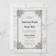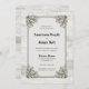 Eine elegante rustikale verziert gebleichte Holzschnitzerei mit gerahmter Hochzeitseinladung mit Vintagem Ambiente, in dem die Braut und die Bräutigamen mit altenglischem Text dargestellt werden. Diese Einladung beinhaltet eine UAWG Anfrage am unteren Rand, um die Gäste zu erinnern, ihre Anwesenheit zu bestätigen.