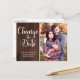 Moderne Skriptaufstellung für Hochzeiten oder Datumswechsel Postkarte mit Ihrem Foto und trendigen Schriften auf rustikalem Holzhintergrund. Wenn Sie Hilfe oder passende Artikel benötigen, kontaktieren Sie uns bitte unter cedarandstring@gmail.com