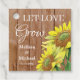 Liebe lass Gastgeschenk Hochzeit-Tags mit hellgelben Sonnenblumen auf einem rustikalen Holzboden wachsen. Ideal für Ihre Samen-Gastgeschenke für Ihr Land Hochzeit Thema. Personalisieren Sie mit Braut- und Bräutigamen und Hochzeitstag.