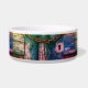 Rustikale Holztüre, Schlüsselloch und Hundeschüsse Napf