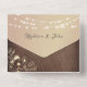 Set Sie den Ton für Ihre Herbst- oder Landhochzeit mit dieser rustikalen All-in-One-Einladung mit warmen Holzkornhintergrund, Saitenleuchten und goldenen Blumenakzenten. Die bunten Lichter und Blumenbilder verleihen dem Hotel einen romantischen, barnartigen Charme. Enthält Platz für UAWG, Gästeinformationen und ein Full-Back-Foto! Eine schöne Mischung aus lässiger Eleganz und personalisierten Details. Bitte beachten Sie: Diese Einladung erfordert einen separaten Briefumschlag. Wir empfehlen die Verbindung mit einem A9-Umschlag (5,75" x 8,75") für die beste Passform.
