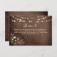 Fügen Sie wichtige Hochzeitsinformationen mit dieser rustikalen Holzdetails-Karte hinzu, die gemütliche Streichellichter und zartes goldblühendes Spitzen enthält. Ideal für die gemeinsame Nutzung von Unterkünften, Hochzeitswebsites, Empfang-Anleitungen oder UAWG. Elegant und dennoch böhmisch ergänzt es Hochzeiten im Herbst mit Scheune, Land oder Vintagem Stil.