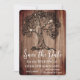 Rustikales Holz Eichenbaum und Streichellichter Wedding Save the Date mit rustikalem Holzhintergrund, einem alten Eichenbaum, Streichelleuchten, moderner Typografie und einer stilvollen Textvorlage. Ein perfektes Design, das zum Hochzeitthema wie rustikale, holzige, landschaftliche, hüttenliche und sternenförmige Hochzeit passt. Bitte klicken Sie auf Personalisieren, um es mit Ihrem eigenen Text anzupassen.