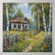 Rustikale Hütte umgeben von Birkenwäldern Poster