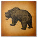 Ein Vintag inspiriertes rustikales illustriertes Bärendesign mit antiken Kunstwerken auf einem braunen oder orangefarbenen Vintagen Papierhintergrund.