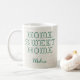 Sieben Sie Ihr Lieblingsgetränk stilvoll mit dieser charmanten personalisierten "Zuhause Sweet Zuhause" Tasse! Diese gemütliche Tasse mit einem Imitat-Kreuzstich-Design in grünem Faden imitiert das Aussehen einer echten Stickerei. Der Hintergrund erinnert an klassische beige Kreuzstickerstoffe und verleiht dem Ganzen ein rustikales, handgefertigtes Ambiente. Passen Sie den Text an, um ihn einzigartig zu machen - fügen Sie einen Namen, einen Familiennamen oder eine spezielle Nachricht hinzu! Ob für sich selbst oder als herzliches Geschenk, diese Tasse ist perfekt für Kaffeeliebhaber, neue Hausbesitzer oder alle, die eine Touch Vintagen Charmes schätzen. Der Personalisierungstext kann bearbeitet oder entfernt werden (ohne Grafik). Wenn Sie Fragen oder Bedenken bezüglich des Designs haben, wenden Sie sich bitte an den Designer. Klicken Sie auf die Schaltfläche Personalisieren, um das Design selbst zu ändern.