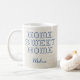 Sieben Sie Ihr Lieblingsgetränk stilvoll mit dieser charmanten personalisierten "Zuhause Sweet Zuhause" Tasse! Diese gemütliche Tasse mit einem Imitat-Kreuzstich-Design in blauen Faden imitiert den Look der echten Stickerei. Der Hintergrund erinnert an klassische beige Kreuzstickerstoffe und verleiht dem Ganzen ein rustikales, handgefertigtes Ambiente. Passen Sie den Text an, um ihn einzigartig zu machen - fügen Sie einen Namen, einen Familiennamen oder eine spezielle Nachricht hinzu! Ob für sich selbst oder als herzliches Geschenk, diese Tasse ist perfekt für Kaffeeliebhaber, neue Hausbesitzer oder alle, die eine Touch Vintagen Charmes schätzen. Der Personalisierungstext kann bearbeitet oder entfernt werden (ohne Grafik). Wenn Sie Fragen oder Bedenken bezüglich des Designs haben, wenden Sie sich bitte an den Designer. Klicken Sie auf die Schaltfläche Personalisieren, um das Design selbst zu ändern.