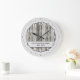 Diese rustikale Uhr kann mit Ihrem Familiennamen und dem festgelegten Jahr personalisiert werden. Es ist mit einem Holzboden aus Imitaten versehen. Farbschema / Weiß, Blassgrau und Dunkelgrau
