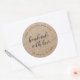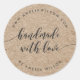 Rustikaler Rundaufkleber mit den Worten "handgefertigt mit Liebe" in einem entspannenden, kursiven Schrift in dunkelgrau vor einem Imitat-Kraftmuster-Hintergrund. Personalisieren Sie es, indem Sie den Platzhalter-Text ersetzen. Für weitere Optionen, wie zum Beispiel den Schriftart zu ändern und ihn zu verändern, erweitern Sie die /Contract-Kurve oder den Abstand zwischen den Buchstaben, klicken Sie auf die Schaltfläche "Anpassen". *Bitte beachten Sie, dass das Zazzle-Wasserzeichen, das in der Zoomvorschau angezeigt wird, NICHT auf dem gedruckten Endprodukt erscheint. © Rosewood and Citrus