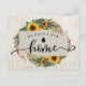 Schicken Sie diese rustikale Sonnenblumenpostkarte an Ihre Freunde und Familie, um ihnen lassen, dass Sie auf eine neue Zuhause umgezogen sind. Die Vorderseite ist schlicht mit dem Wort "Zuhause", das in handgeschriebenem Stil kalligraphisch auf hellen Holzfußboden mit Sonnenblumen und Grünpflanzen dargestellt ist. Auf der Rückseite können Sie Ihre neue Adresse bekannt geben.