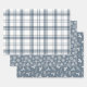 Rustikale Karierte Schneeflocken und Holly Berries in Country Blue. Das rustikale Verpackungspapier ist ländblau und weist ein kariertes blaues und weißes Muster, Schneeflockenmuster und Urlaubspflanzen mit heiligen und heiligen Beeren auf. Eine perfekte Touch für Ihre Urlaubsgeschenke.