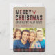 Rustikale karierte Weihnachtsfotokarte in Rot und Schwarz. Fügen Sie Ihr Familientext und Ihren eigenen Text hinzu.