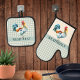 Rustikale Karo Rooster Name | Monogramm Ofenhandschuh & Topflappen-Set