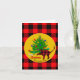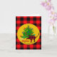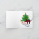 Rustikale gefaltete Grußkarten mit Kat- und Weihnachtsbaum, eigenem Familiennamen und personalisierten Unterschriften unterstrichen mit kariertem Rot- und Schwarzbüffel-Muster.