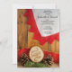 Rustikale Kiefern und Winterabendessen am roten Sp Einladung