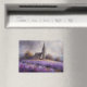 Ein ruhiges Gemälde einer rustikalen Kirche, eingebettet in ein lebendiges Feld lila Wildblumen. Die sanften Farbtöne der Blüten kontrastieren wunderschön mit der verwitterten Struktur der Kirche und schaffen eine ruhige und zeitlose Landschaft, die Ruhe und Charme ausstrahlt.