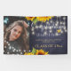 Rustikale, blumengeschmückte Gratulationen für die Gradverkündung oder das Party-Banner mit Sonnenblumenbouquets, dunklem Marineschalkboard und Streichern aus bunten Lichtern und einem Imitat mit goldenen, schicken Typografie-Skript.++++++++++ Einfach mit Ihrem Bild, Namen, Schule und Klasse zu personalisieren.