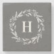 Moderner Bauernstein Untersetzer personalisiert mit Ihrem Monogramm in einem rustikalen Kranzrahmen. Anpassen Sie es, um Ihren eigenen Text hinzuzufügen und ein einzigartiges Geschenk für frisch vermählte oder häusliche Erwärmung zu schaffen.