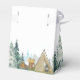 Diese lustige rustikale Geburtstagsgeschenk-Box hat eine Holzverkleidung mit dem Titel "CAMPER" und Skript-Schriftart. Der Boden hat einen Aquarellwald, Berge und Landschaft. Es ist mit den bräunlichen, grünen und braunen Camping, die ein Zelt und Feuer einschließen, fertig.