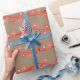 Rustikale Kraft Bright Red Christmas String Lights Geschenkpapier