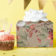 Eine rustikale Kraft-Urlaubspackung, in der die Vögel, die rote Beeren essen und sich in einem Wiederholungsmuster auf Weihnachtspoinsettien ruhen, in Aquarellmalereien mit schwarzer Kappe aufgestrichen werden.