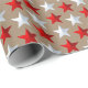 Ein rustikales Packpapier für den Weihnachtsurlaub mit leuchtend roten und weißen Sternen in einem wiederholten Muster auf einem warmen Kraftpapier.