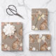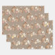 Ein heftiges luxuriöses Verpackungspapier in einem kraftpapierfarbenen Hintergrund mit Aquarell lackierten Hasen, die ihre bunte Ostereierjagd teilen.