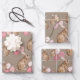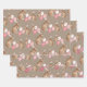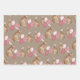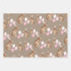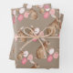 Ein heftiges luxuriöses Verpackungspapier in einem kraftpapierfarbenen Hintergrund mit Aquarell lackierten Hasen, die ihre bunte Ostereierjagd teilen.