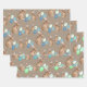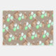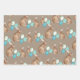 Ein heftiges luxuriöses Verpackungspapier in einem kraftpapierfarbenen Hintergrund mit Aquarell lackierten Hasen, die ihre bunte Ostereierjagd teilen.