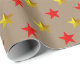Ein festliches Packpapier für die Weihnachtsferien mit roten und goldenen Sternen auf einem rustikalen Hintergrund aus Kraftpapier. Ideal für jeden Anlass und macht eine eindrucksvolle Geschenkpackung.