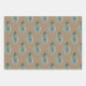 Wasserfarbene blaue Fichtenbäume in einem wiederholten Muster auf Kraftfarbpapier in drei getrennten Blättern.