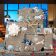 Ein rustikales Packpapier mit einem kraftpapierfarbenen Hintergrund mit einem farbigen, wasserfarbenen Wald, weißen Eulen, weißen Pferden und dem weißen arktischen Fuchs.