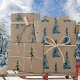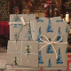 Ein Urlaubspapier mit Aquarellfarben-Fichte, Zeder und Kiefern in einem Wiederholmuster gegen ein hellbraunes Kraft-Farbpapier.