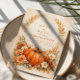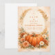 Warm, romantisch und mühelos saisonal, dieses Herbst-Hochzeitsdesign zeigt einen reichen Erbstück-Kürbis, umgeben von weichen Blumen und zarten Herbstblättern. Ein eleganter botanischer Bogen umrahmt den Text und schafft eine ausgewogene und elegante Komposition mit subtiler rustikaler Note. Der warme neutrale Hintergrund und die verbrannten orangefarbenen Akzente machen es perfekt für eine Outdoor-Herbstfeier, eine Scheunenhochzeit oder ein ernteinspiriertes Ereignis.