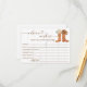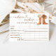 Teilen Sie mit dieser rustikalen Landratskarte, die sich perfekt für Brautpartys und Hochzeitsfeiern eignet. Mit Cowgirl-Stiefeln, Cowboyhut, Blumenmuster und rustikalen Holztexturen ist dieses Design ideal für Western- oder Scheunenfeiern. Die Gäste können ihre besten Ratschläge und guten Wünsche für das glückliche Paar ausfüllen und so einen süßen Sake schaffen, den sie für immer lieben werden.