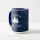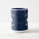 Eine stilvolle, rustikale Tasse, mit Ihrem Namen und "Family Cabin", Ranch, Hütte oder anderen Texten, auf Wunsch mit Datum und Ort. Dieses individuelle Design zeichnet sich durch einen rustikalen Landstext aus, der eine weiße Silhouette von Kiefernbäumen auf Holzplanken in blauen Farbtönen aufweist. Um mehr Designs wie dieses zu sehen, besuchen Sie bitte meinen Shop hier unter "Zazzle.com/Rustic_Charm". Danke.