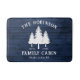 Eine stilvolle, rustikale Badematte mit Ihrem Namen und "Familienhaus", Ranch, Hütte oder anderen Texten, auf Wunsch mit Datum und Ort. Dieses individuelle Design zeichnet sich durch einen rustikalen Landstext aus, der eine weiße Silhouette von Kiefernbäumen auf Holzplanken in blauen Farbtönen aufweist. Um mehr Designs wie dieses zu sehen, besuchen Sie bitte meinen Shop hier unter "Zazzle.com/Rustic_Charm". Danke.