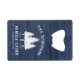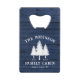 Ein rustikales Thema Kreditkartenflasche mit Ihrem Namen und "Familienhaus", Ranch, Hütte oder anderen Texten, auf Wunsch zusammen mit dem festgelegten Datum und Ort. Dieses individuelle Design zeichnet sich durch einen rustikalen Landstext aus, der eine weiße Silhouette von Kiefernbäumen auf Holzplanken in blauen Farbtönen aufweist. Um mehr Designs wie dieses zu sehen, besuchen Sie bitte meinen Shop hier unter "Zazzle.com/Rustic_Charm". Danke.